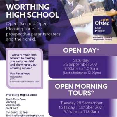 WORTHING HIGH OPEN MORNING – Saturday 25 September 2021