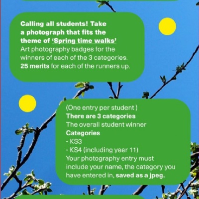 I would like to say a massive thank you to all of the budding photographers who ventured out to find images for the STEAM Photography competition, on the theme of ’Spring Time Walks ‘
