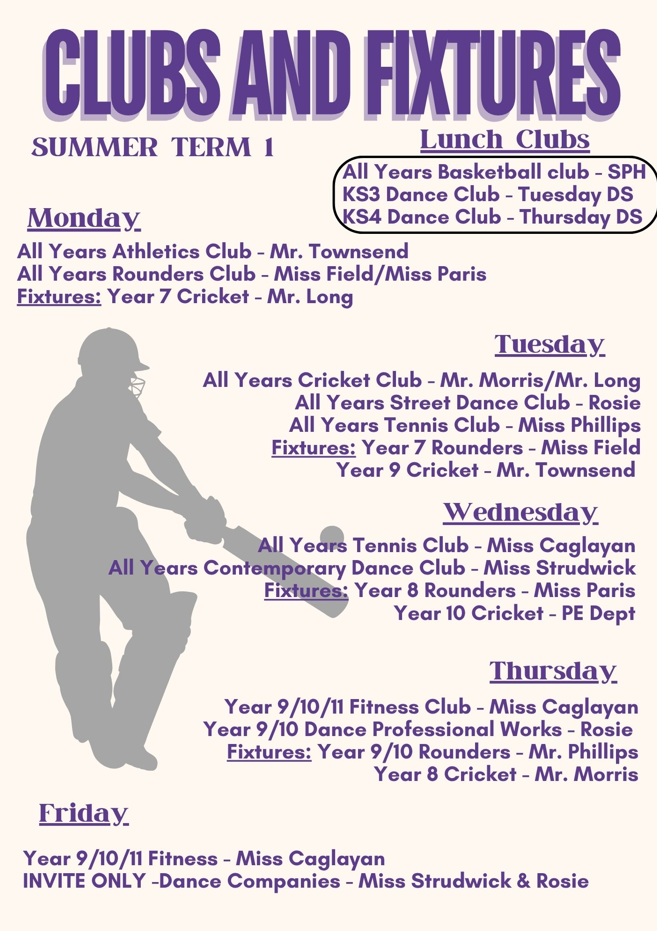 CLUB TIMETABLE AND FIXTURES