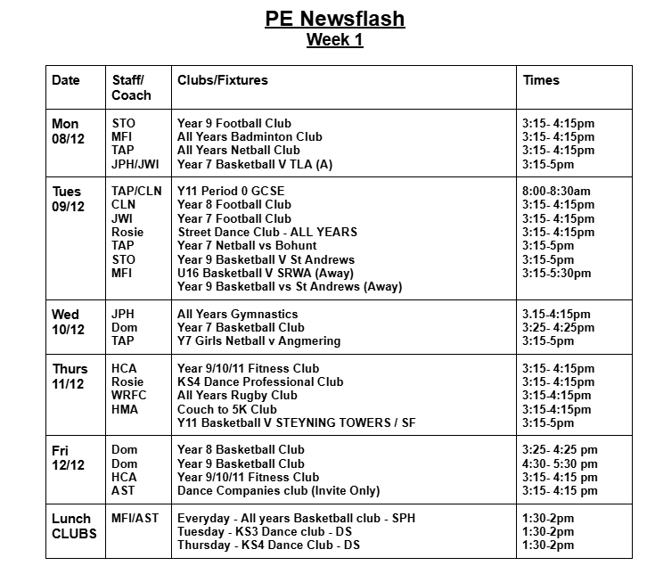 Most clubs will run 3:15-4:15 pm; some clubs run at slightly different times. Please check the club timetable carefully. All students are welcome to attend clubs. Registers will be taken weekly. Therefore, there is no need to sign up for a club before it starts. If students are attending clubs, please can we remind you that students must be in their WHS PE kit.